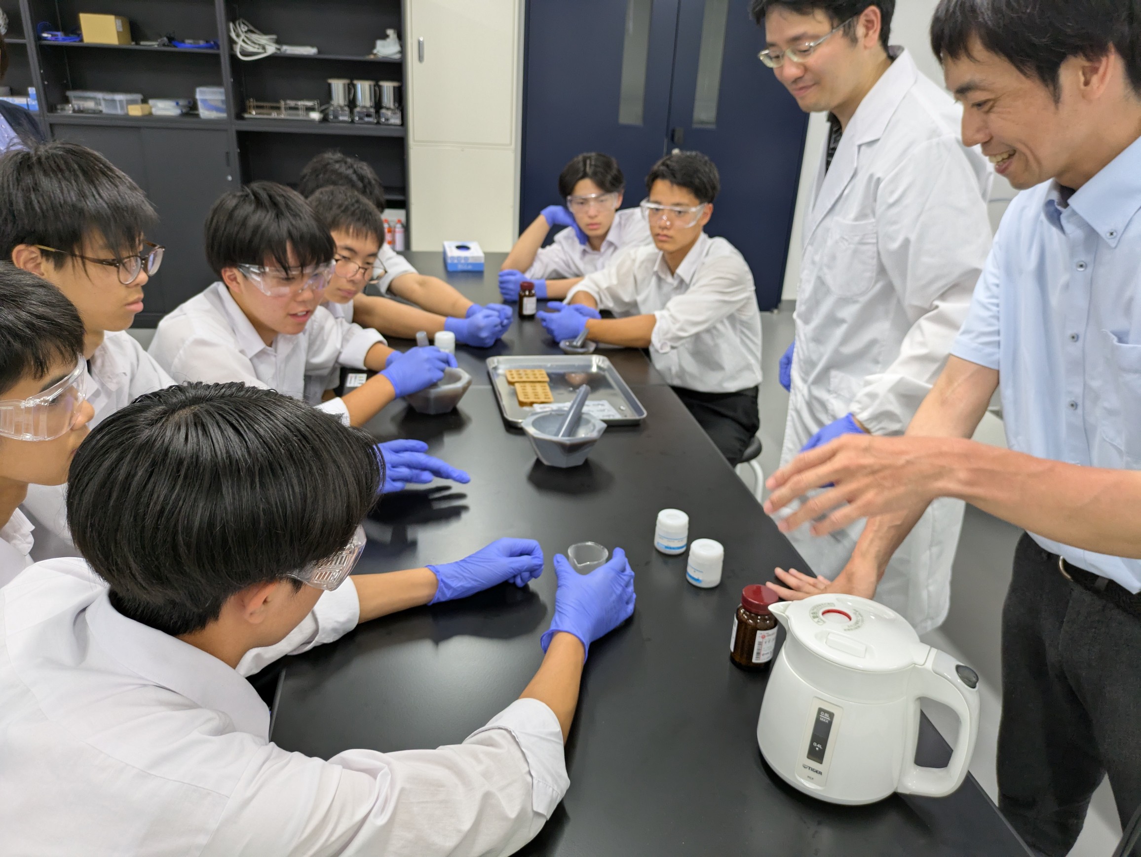 参加した生徒からは「大きな顕微鏡や、いろいろな実験用具がそろっていて装備がすごいと思った」「説明があったものが目の前で実験してもらえると、具体的にどんな物かが理解できて面白かった。」など、施設見学での驚きや、実験を体験しての理解の深まりなどの感想をいただきました。