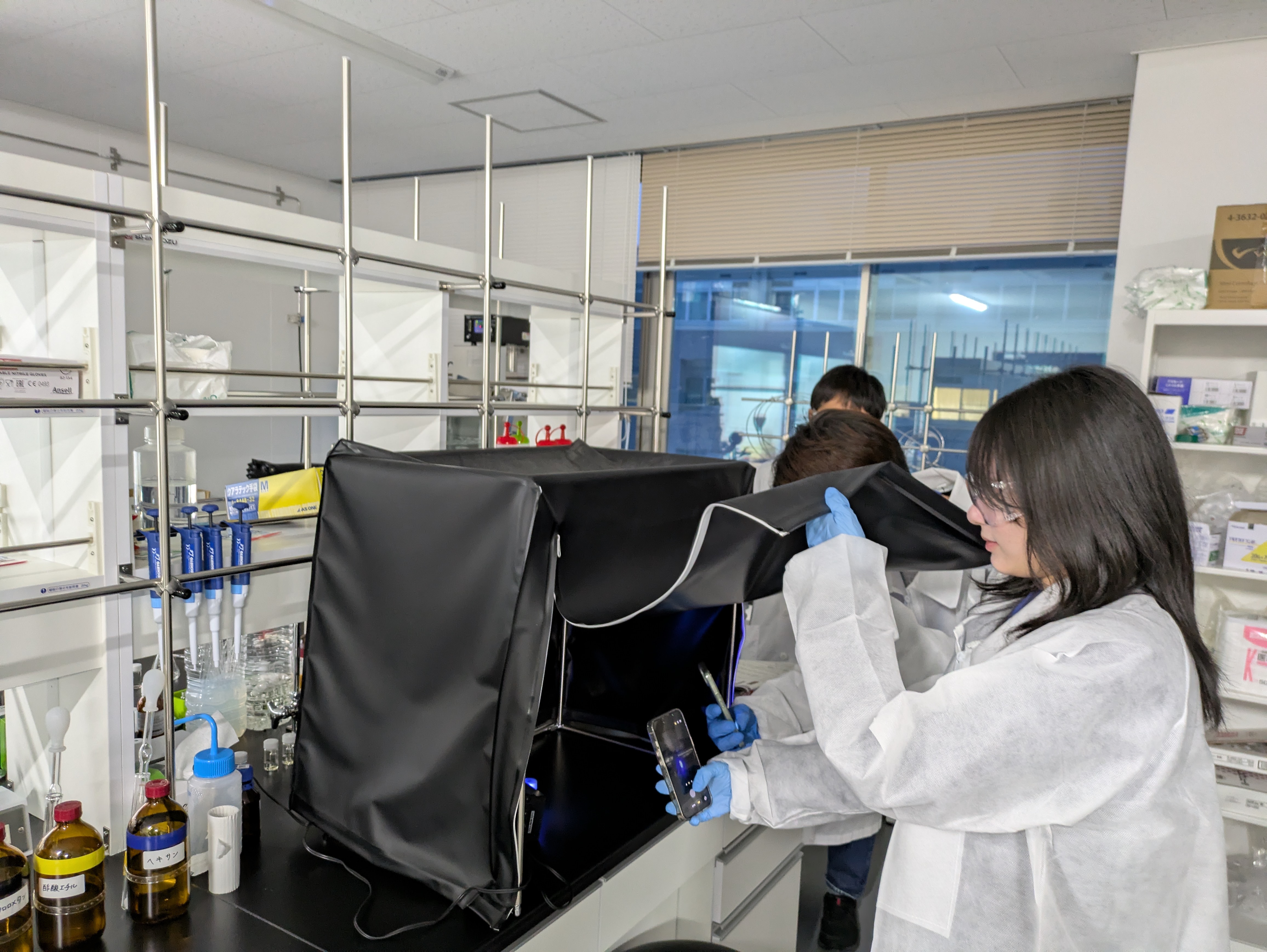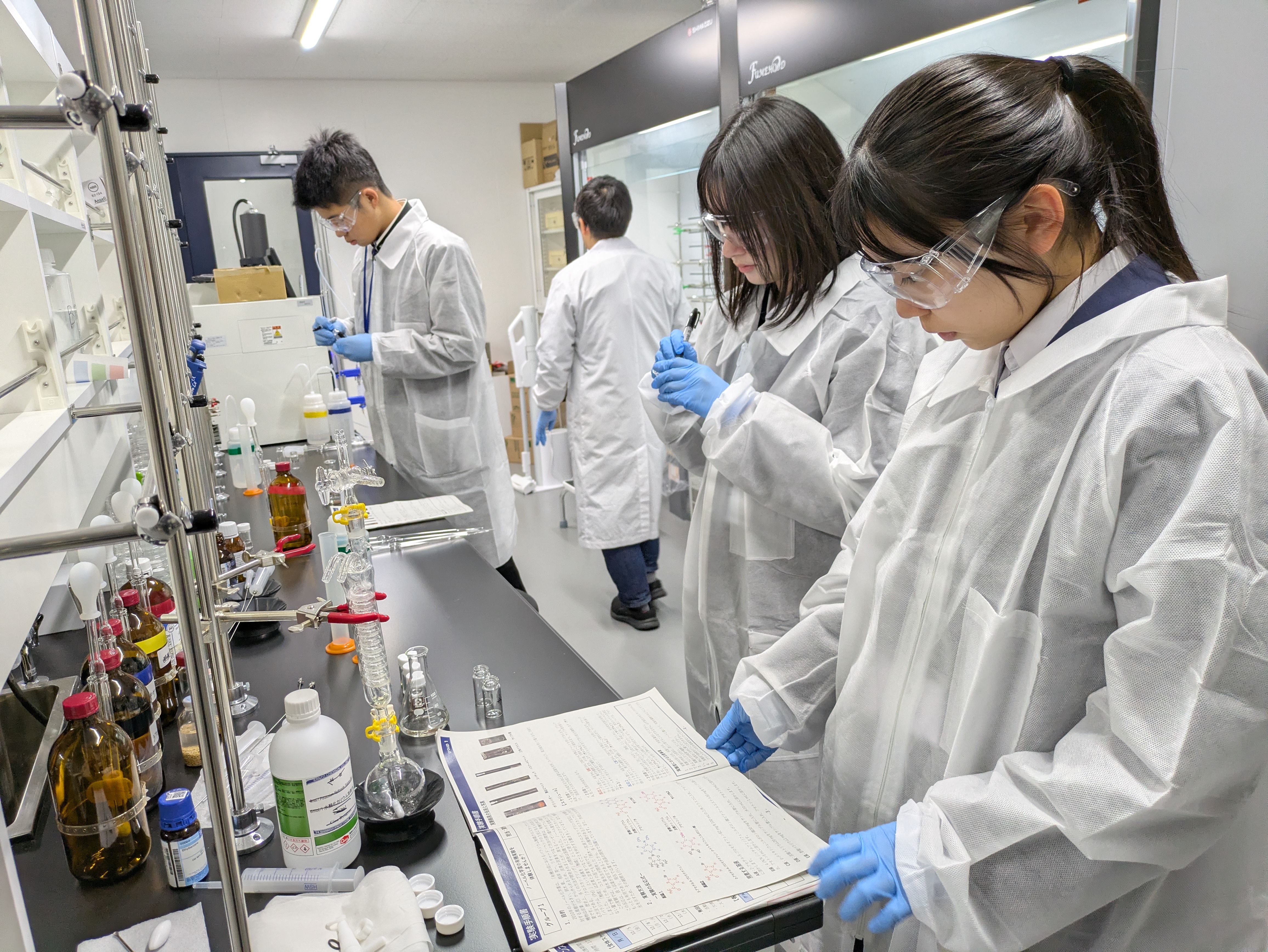 学生たちは担当教員とともに、大学の研究設備を活用しながら実験と学びを深めていました。